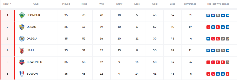 K League 1 Final A Table